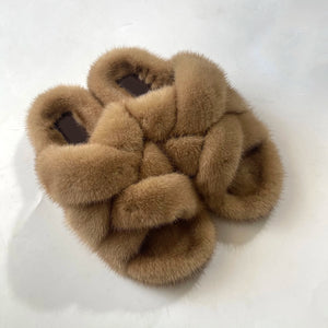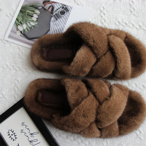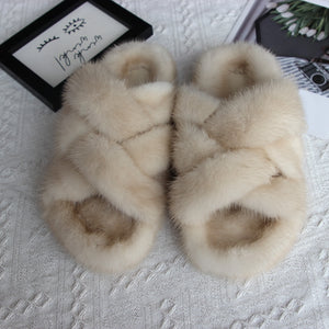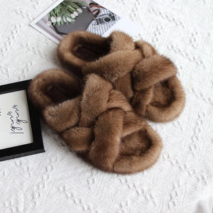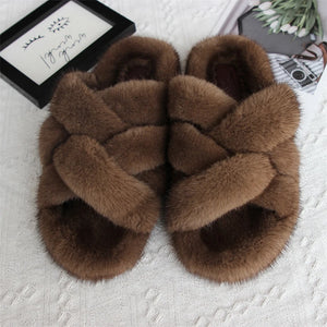 Women's Fur Slippers Women Luxury Designer Resort Fashion 100% Mink Leather Slippers Ladies Fur Shoes Flat Summer Fur Slides