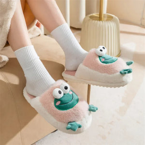 Womens House Slipper Female Frog Bear Winter Warm Kawaii Cartoon Plush Contton Indoor Non Slip Funny Cute Fuzzy Home Floor Shoes