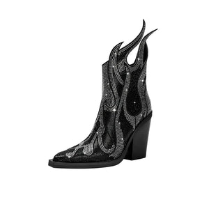 Women's new spring and autumn pointed fashion show rhinestone high heels, plus size zipper calf fashion boots