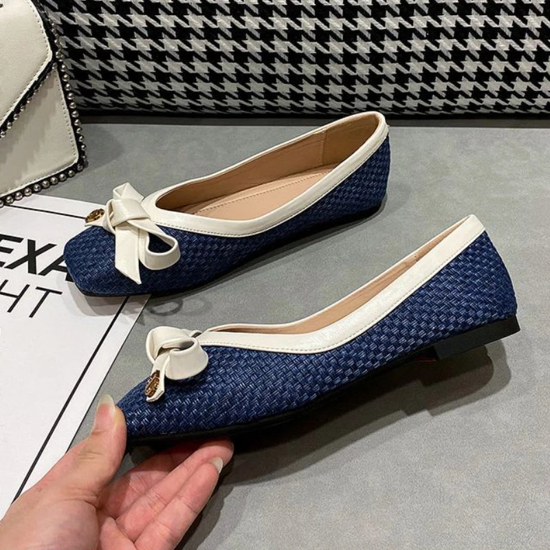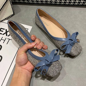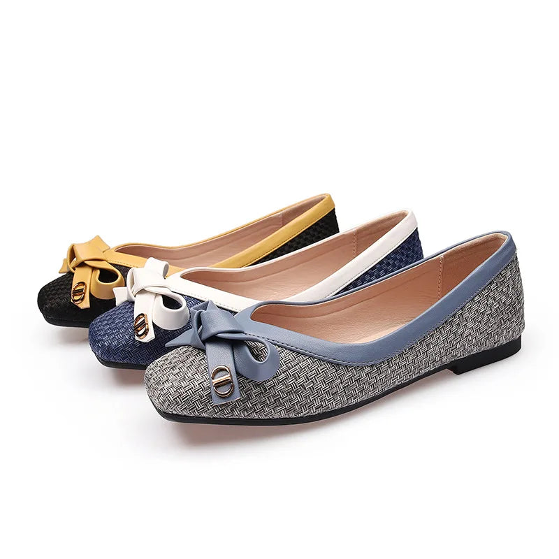 Women's Shoes 2024 New Woven Bow Square Toe Women's Ballet Flats Female Soft Sole Large Fashion Women's Shoes Chaussure Femme