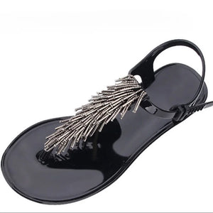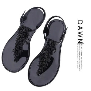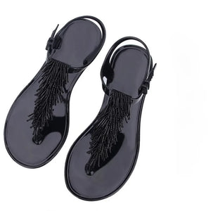 Women's Shoes Flip-flops Sandals for Woman Black Footwear Plastic with Low Heels Summer 2024 Crystal Pvc Wholesale Luxury Sale H
