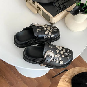 Women's Slippers Summer New Thick Bottom Baotou Metal Decorative Buckle Sandals Casual Lightweight Comfortable Non-slip Slippers