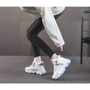 Women's White Winter Sneakers with Plush Lining and Chunky Sole - Warm High-Top Athletic Shoes for Cold Weather zapatos de mujer