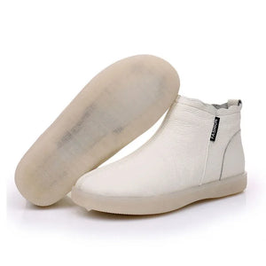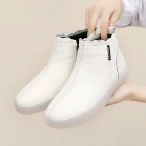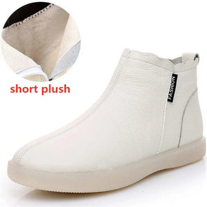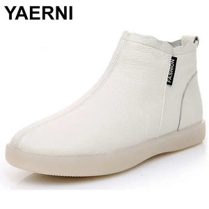 YAERNIGenuine Leather Women's Boots, Warm Plush Warm Leather Women's Ankle Boot for Winter, Women's Flat Shoes, Large Size 43