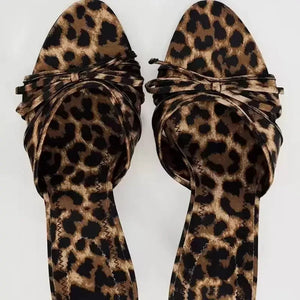 ZA2024 New European and American High Quality Women Shoes Bow Knot Leopard Print High Heel Slippers Women Slippers
